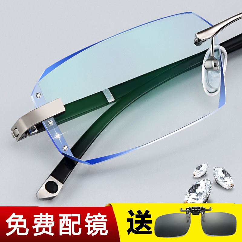 Diamond Memotong Cermin Mata Tanpa Bingkai Lelaki Dan Wanita Model Berlian Berkilat Cermin Mata Lama Anti Biru Cermin Ma Shopee Malaysia